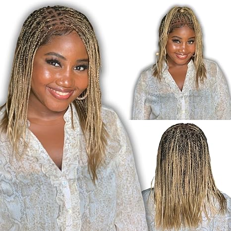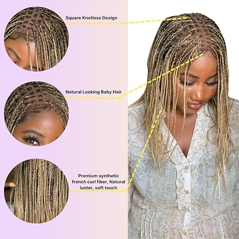 - NATURALLY FLAWLESS APPEARANCE – Discover the magic of our micro braided wigs for black women, where realism meets elegance. This micro braid wig in box braids wig style can be curled and styled like aboho knotless braids human hair wig. The braid wigs are meticulously designed to mimic real hair, so much so that they’re often mistaken for the real thing! Our adjustable braided lace front wigs for black women cater to all, ensuring a perfect match for both short and long hair types.