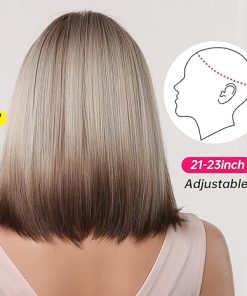 Wig store-Bob Wig-Allbell Brown Blonde Ombre Bob Wigs for Women Cosplay Wig with Bangs Dark Roots Gray Natural Hair Synthetic Wig