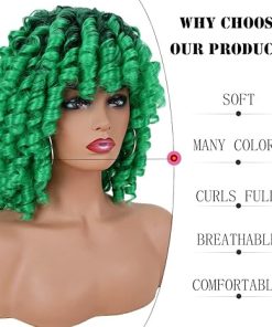 - 【Hairstyle Design】Soft curly wigs with bangs for black women, the wave and curls are very full. You can make your favorite hairstyle by working with your fingers. It is bring you comfort and charming, let your beauty start from the beginning.