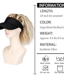 Wig store-Coily-AynnQueen Visor Hat with Ponytail for Women Adjustable Hat with Synthetic Wig Attached 8inch Kinky Curly Ponytail Summer Style Black Visor (Ginger Blonde Mix Bleach Blonde)