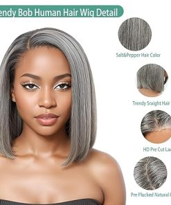 Wig store-Curly-12″ Glueless Salt And Pepper Human Hair Wigs Staight Grey Bob Wig Human Hair 5×5 Closure Grey HD Lace Front Human Hair Wigs Pre Cut Pre Plucked Hairline Gray Short Bob Wigs for Black Women