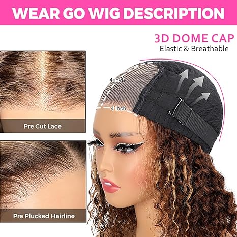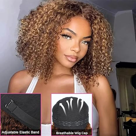 - Wear and Go Bob Wigs Human Hair Pre Plucked:Quick and free to wear, the 3D hat is comfortable and breathable. Honey blonde afro kinky curly glueless bob wigs, give you a unique charm.