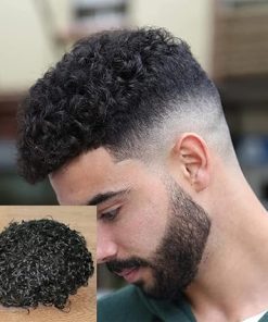 Wig store-Curly-20MM Curly Toupee Durable Full PU Thin Skin Men’s Wig Human Hair Men Capillary Prosthesis Comfortable Replacement System Pieces (8 * 10- 1(jet black))