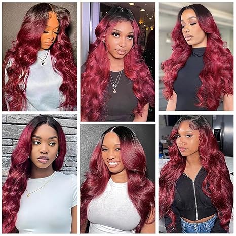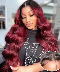 Wig store-Curly-5×5 Omber Burgundy 99J Body Wave Lace Front Wigs Human Hair Burgundy Human Hair Wig 200% Density 99J Body Wave HD Lace Front Wigs Human Hair