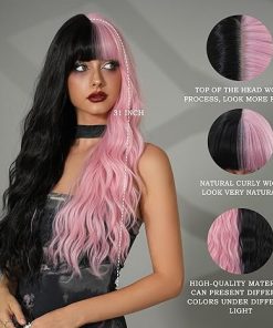 Wig store-Curly-7JHH WIGS 31in Half Black Half Pink Long Loose Wavy Wigs with Bangs Natural Heat Resistant Synthetic Fiber Highlight Ombre Curly Wave Black Pink Women Wigs for Chrismas Daily Party Daily Used