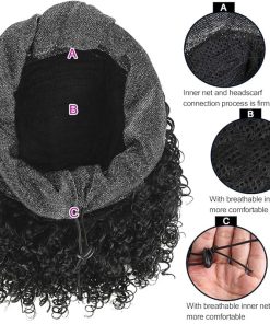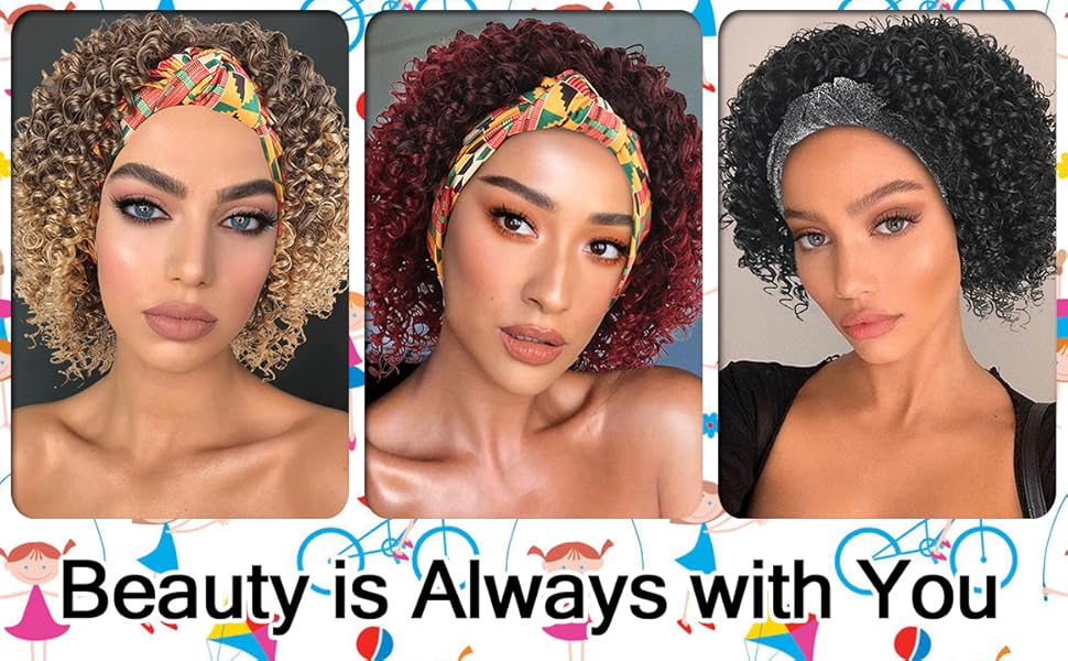 Wig store-Curly-Aisaide Curly Headband Wigs for Black Women- Synthetic Deep Wave Curly Hair Wigs Short Black Wigs with Headband Attached Afro Full Kinky Curly Natural Cheap Wig Head Wrap Turban Wigs with Gray Scarf