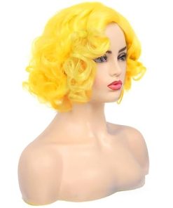 - Color:Yellow Full Wig.Short Curly Women Wig Perfect for Role Playing,Carnivals,Theme Party,Halloween,Costume and Daily Use.