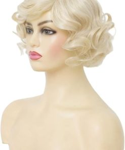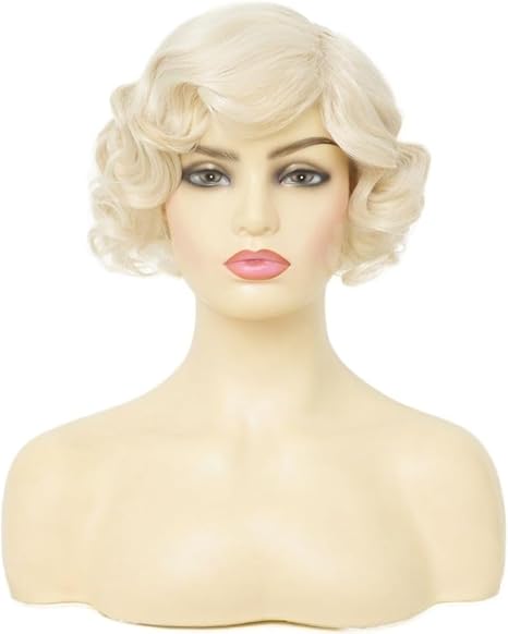 Wig store-Curly-Blonde Finger Wave Wig for Women 1920s Short Curly Synthetic Flapper Wig Heat Resistant Vintage Cosplay Costume Hair Wigs