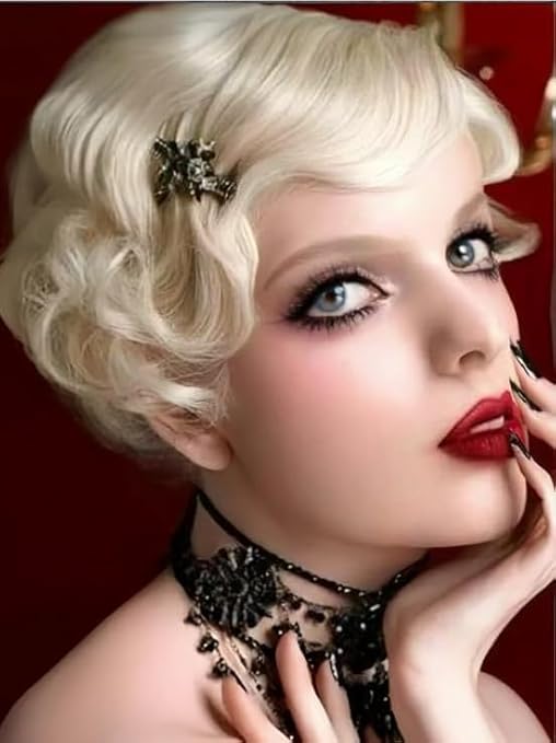 - The 1920s wig – Blonde short finger wave wig,made of synthetic heat-resistant fibers,is naturally soft and durable.