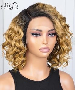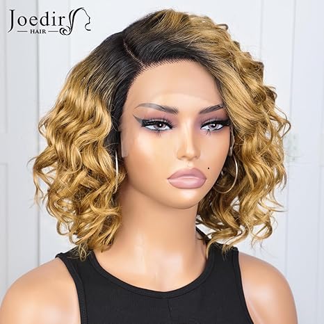Wig store-Curly-Blonde Side Part Short Curly Human Hair Wig for Black Women C Parted HD Lace Front Wig Short Water Wave Wig Curly Bob Wig 150% Density