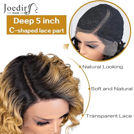 - 🍀【Short Curly Lace Front Wig】The C-shaped right side lace part make it look more natural and real, and the baby hair is avaliable if you want it.