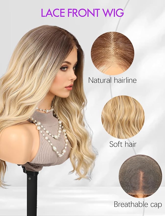Wig store-Curly-Blonde Wigs for Women Lace Front Wig Heat Resistant Fiber Curly Hair Daily Use with Dark Roots