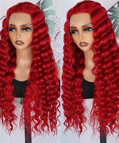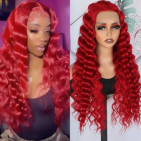 Wig store-Curly-Bright Red Loose Curly Lace Front Wigs Pre Plucked Loose Curls Wig Glueless Red Colored Wigs Heat Resistant Long Water Wave Synthetic Lace Front Wigs for Fashion Black Women