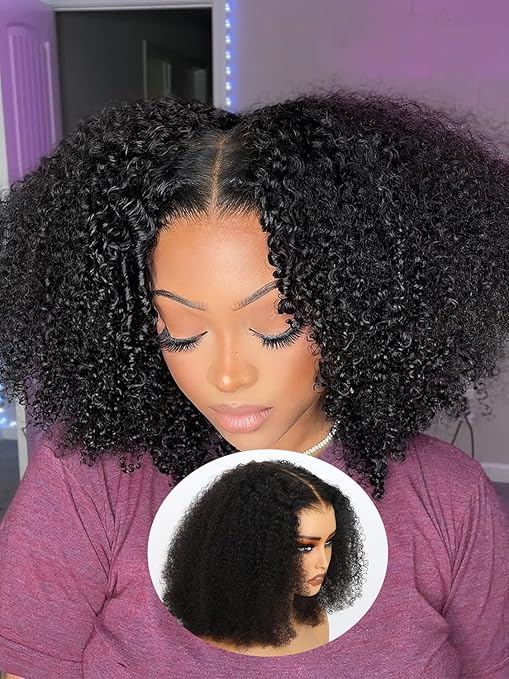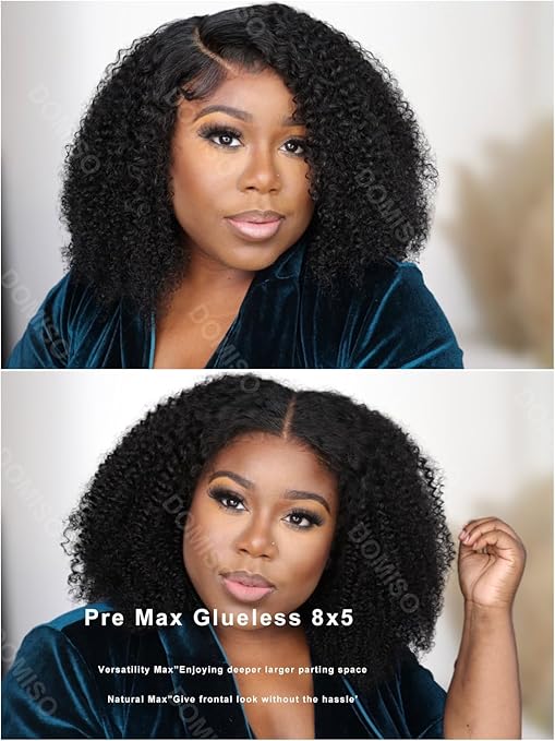 Wig store-Curly-Domiso Glueless HD Lace Pre Cut Afro Kinky Curly Wig Human Hair 8×5 M-Cap Max Part Knots Bleached Glueless Wigs Human Hair Pre Plucked Pre Cut Lace Wig Glueless Wigs Big Fluffy Curl 16 Inch