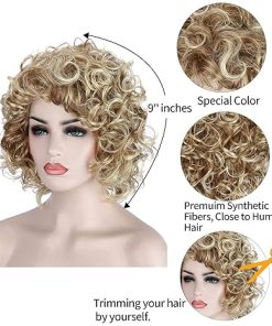 Kalyss Short Curly Wavy Blonde Wigs for Women Heat Resistant Synthetic Full Head Hair Costume Wig