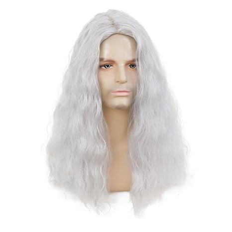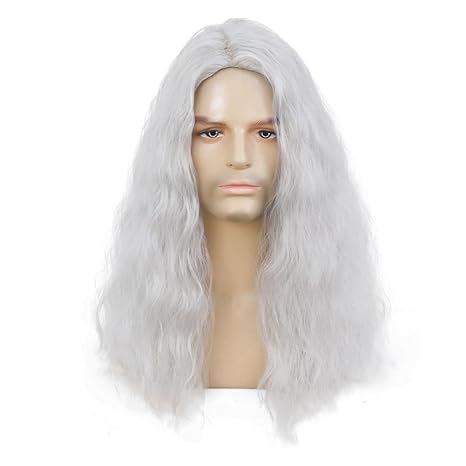 Wig store-Curly-Kaneles Grey Long Curly Wigs for Men Fluffy Dirty Hair Cosplay Wig Halloween Costume Movie Cosplay Punk Wig
