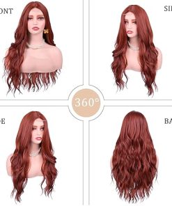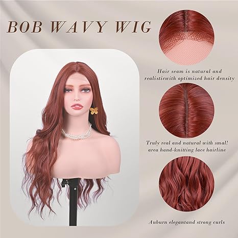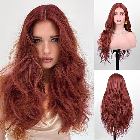 Wig store-Curly-Long Auburn Wavy Wig for Women 26 Inch Middle Part Curly Wigs Lace Hairline Wigs Synthetic fiber Wigs for Daily Party Use(Auburn)