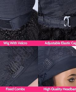 - Kinky Straight Headband Wigs Cap Size:Glueless Headband Wig Cap with 4 Comb、2 Adjustable Strap and High Quality Headband,Medium cap size(21.5″-22.5″),Fits Most People’s Head Circumference, Easy to Wear