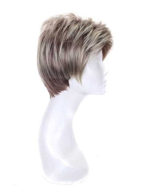 Wig store-Curly-Mens Short Brown Wigs Fluffy Layered Natural Side Part Wig Natural Short Straight Hair Synthetic Hair Heat Resistant Replacement Full Wigs (Brown Gradient)