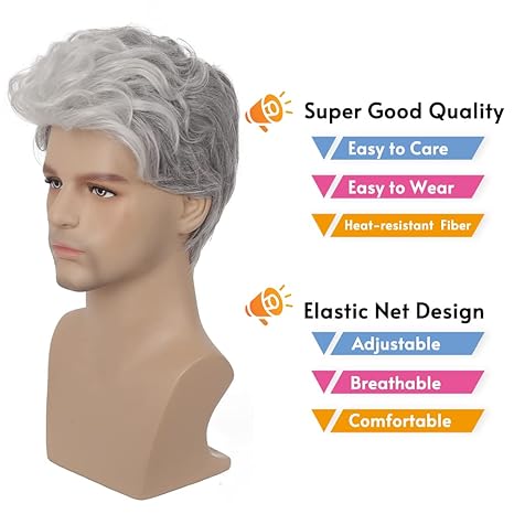 - 【Premium Material】:The short grey wig for men is made of high temperature resistant synthetic fiber, soft touch and skin friendly. Easy to comb and not easily tangle and hair loss.