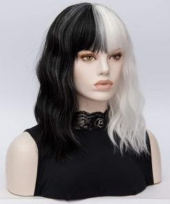 Transform your look with the Morticia Curly Bob Wig! Shop now for stunning heat-resistant style in striking black and white.