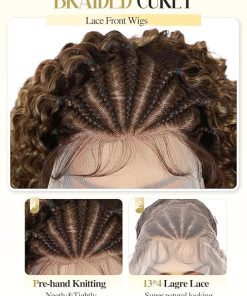 Wig store-Curly-Quantum Love Braided Wigs for Black Women Ombre Brown Blone Braids Cornrows Lace Curly Wigs 16 Inch Fully Lace Frontal Braided Curly Bob Synthetic Glueless Wigs