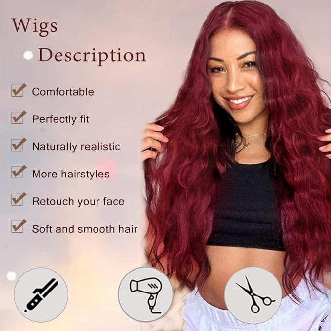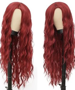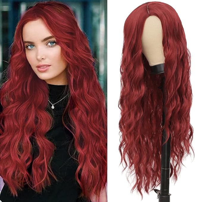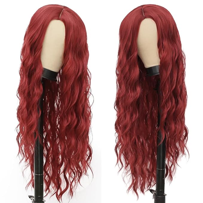 Wig store-Curly-Red Long Curly Wavy Wigs for Women Wave Middle Part Synthetic Wig for Daily Halloween Use Cosplay Wigs (30Inch)