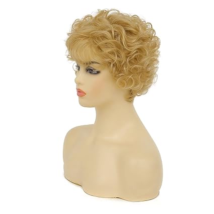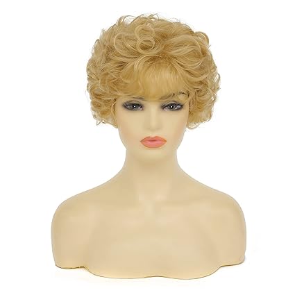 Wig store-Curly-Short Blonde Wigs for White Women Curly Natural Old Lady Hair Wig with Bangs Costume Halloween Party Daily Wig(Blonde)