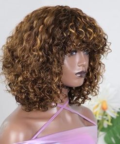 - 【Curly Wig with Bangs Human Hair Material】100% Unprocessed Brazilian Virgin Human Hair, Short Bob Curly Wig with Bangs. High Quality, Can be dyed, Bleached, Curled, Restyled, and Permed as Your Own Hair.
