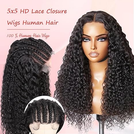 - 🎀【5×5 HD Lace Closure Wigs Human Hair】5×5 Deep Wave Glueless Wigs Human Hair,Made From 100% Unprocessed Brazilian Virgin Human Hair.Full&Thick,Natural-Looking,No Shedding, No Tangle,No Smell,True To Length Health,Classic and Soft Deep Curly Human Hair Wig,Silky and Shiny,Light And Soft, Showing a Confident Style
