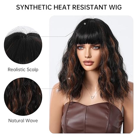 - 【Popular Wig】 The short wavy black bob with bangs have always been popular among women of all skin tones because short wigs with bangs are convenient, simple, and look natural, perfect for cosplay, Christmas, Masquerade, Easter, anime party, Halloween, daily use and any theme parties.