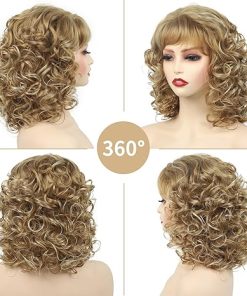 Wig store-Curly-TISHINING Short Blonde Curly Wig with Bangs for White Women Shoulder Length Mixed Blonde Shaggy Curly Synthetic Full Wig Natural Looking Daily Party Halloween Costume Wig