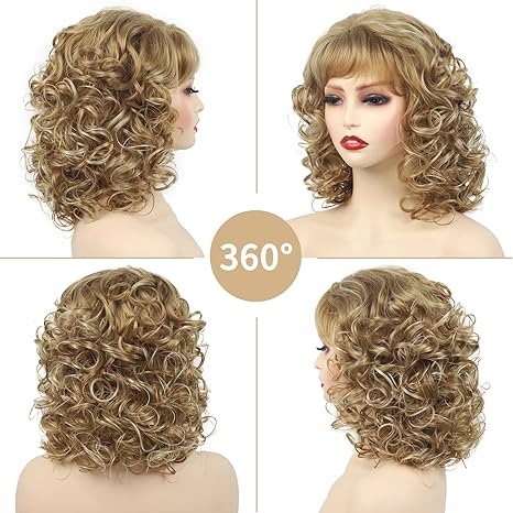 - Thoughtful Little Gift: When you receive the package, not only this short blonde curly wig with bangs, but also a small gift of a pair of eyelashes and a wig cap to help you wear the wig better, if you have any questions about this mid-length blonde wig, please feel free to contact us and we will reply you promptly.
