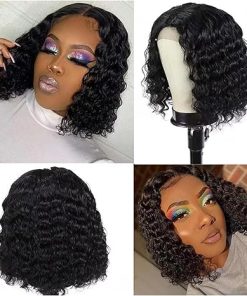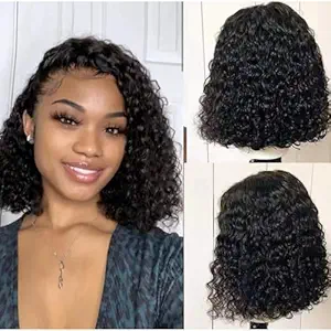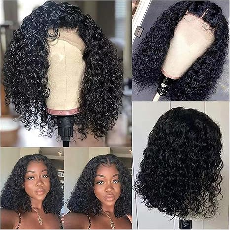 Wig store-Curly-Wig Glue Free Precut 4×4 Lace Front Wig Women Hair Glue Free 180% Density Water Bob Wig Human Hair Beginner Curl Front Wig (14 Inch)