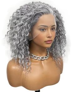 Discover our Curly Lace Front Wig in elegant grey-white! Heat-resistant & natural-looking. Shop now for a stunning new look!