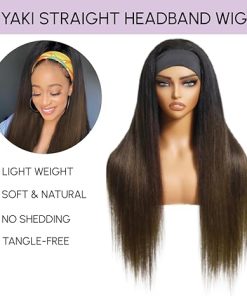 - Yaki Straight Headband Wig Material:100% Brazilian Human Hair,Glueless Yaki Straight Chestnut Brown Human Hair Was Cut From Young Donors,No Tangle, No Shedding, Full And Thick, Can Be Dyed ,Permed, Bleached,Highlighted,Straighten Or Styled As Your Own Hair
