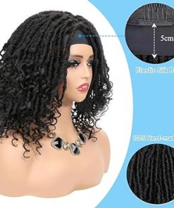 Wig store-faux locs-Dreadlock Braided Wigs with Headband Wear and Go Glueless Wig 14 Inch Black Faux Locs Bob Wig Synthetic Goddess Braids Crochet Hair Wig with Curly Ends Braided Wigs for Black Women (1B Black Color)