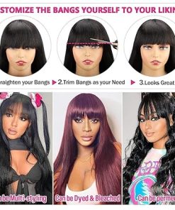 Wig store-Human hair-Brazilian Virgin Straight Human Hair Wigs with Bangs 180% Density None Lace Front Wigs Glueless Machine Made Wigs for Black Women Natural Color(10inch)