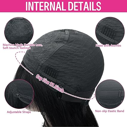 - 🎀🎄Hair Color:Natural Black Color,Can be Dyed and Curled,Can be Restyled like your own Hair.Wig Cap:Medium Cap 22-22.5inch (Average Cap Size).With Combs and Adjustment Straps can be Intertwined to a Fixed Position ,and can be Adjusted to Different Head Sizes