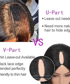 - 🍏Kinky Straight Vpart Wig Features:This v-shaped opening gives you an opportunity to blend your hair with the wig and expose your scalp to give you a natural looking hairline. kinky straight u part wig Updated versiongives you a natural sew-in weave look.