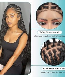 - Natural Looking: Introducing the knotless box braided wig – the ultimate hair transformation for all the women out there! Lace front braided wigs made with the finest 13×8″ HD lace front and half back double lace, so it looks natural from both the front and the back. Box braided wig with baby hair delicately placed around the edges for a seamless hairline transition. It’s time to embrace your inner queen and command attention with your stunning box braided wig