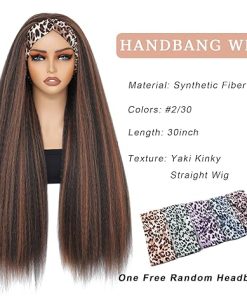 Wig store-Long Hair-Alileona Synthetic Headband Wig-Brown Headband Wig 30Inch Kinky Straight Headband Wig for Black Women (2/30#)