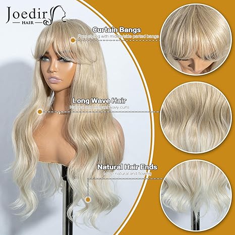 Wig store-Long Hair-Blonde Wig with Bangs Long Wavy Wigs for Women with Curtain Bangs 26 Inch Synthetic Wig Halloween Costumes Cosplay Party Wigs