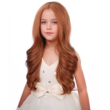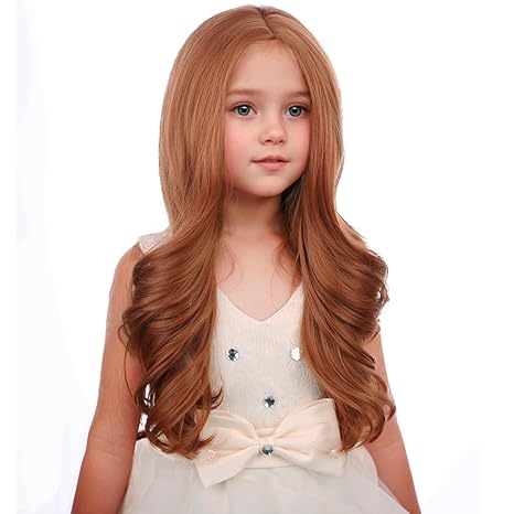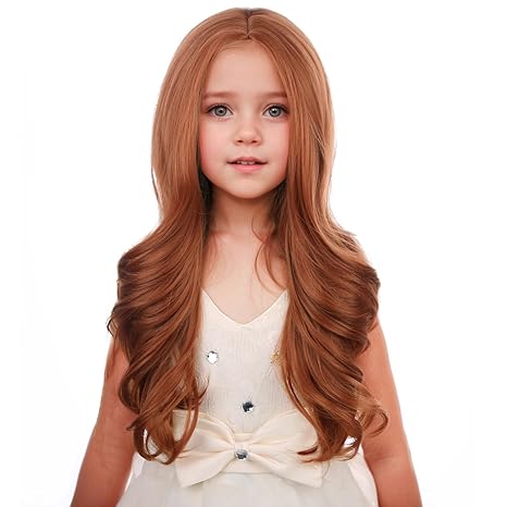 Wig store-Long Hair-Dark Orange Wig Kids Child Wig Long Curly Wavy Wig Ginger Wig Middle Part Girls Wig Auburn Wig Heat Resistant Synthetic Hair Wig with Wig Cap