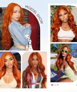 - 13×6 LACE FRONT WIGS HUMAN HAIR:13×6 ear to ear HD transparent Swiss lace is soft and thin, with better breath ability. The undetectable invisible lace can blend seamlessly with your scalp, orange human hair wig presenting the most natural hairline, Creating a natural and perfect look. 6 inches long with deep parting space, you can easily style ginger body wave wig into various hairstyles, such as side parting, middle parting, free parting and high ponytail.