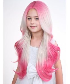 Wig store-Long Hair-MAGQOO Hot Pink Blonde Ombre Wig Girls Dark Pink White Ombre Wig Middle Part Two Tones Ombre Colorful Wig Halloween Cosplay Costume Party Wig