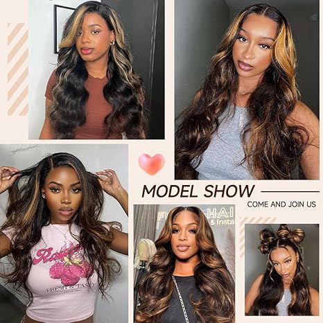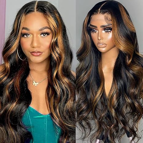 - 1B/30 colored wigs human hair:13×4 HD Transparent lace,true to length,weight,no shedding,tangle free,can be side part, middle part, high ponytail,bun,can design any shape you like,stylish dispersed highlight strips effortlessly elevate your hairstyle.