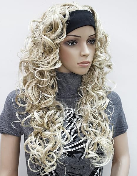 Wig store-Normal-3/4 Band Headband wig Women’s Light Blonde with Highlight Long Curly Wigs for Women ladies wigs Wiginway