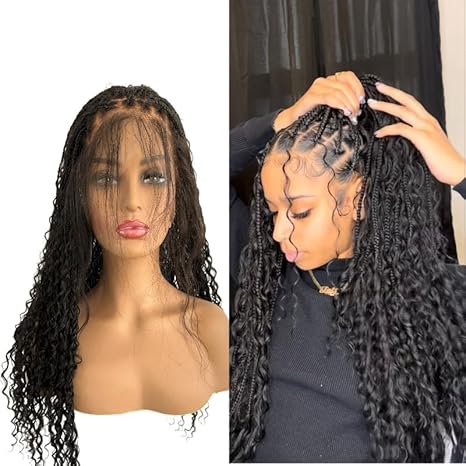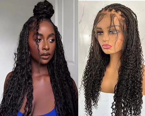 - HD Full Lace Braid Wig Human Hair Boho Box Braided Wig,100% Human Hair
