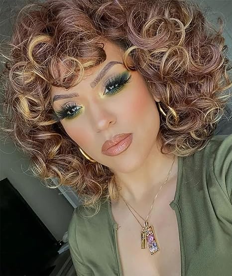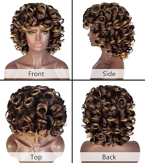 Wig store-Normal-ELIM Curly Wigs for Black Women Short Kinky Curly Brown Mixed Blonde Wigs for Women Big Curly Afro Soft Wig with Bangs Heat Resistant Natural Cute Synthetic Wig with Accessories Z014MD